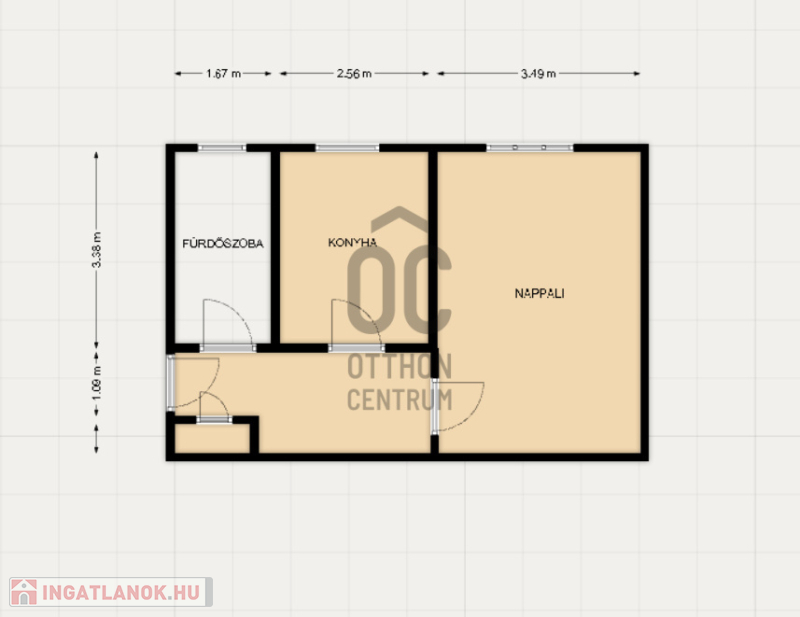 A lakásban egy tágas szoba és egy ablakos fürdőszoba található, amely ideális választás lehet fiataloknak, pároknak, vagy akár befektetési céllal vásárlóknak is.