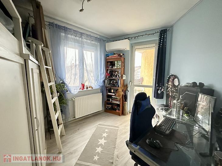 Vác kedvelt városrészében, Deákváron kínálunk eladásra egy világos és tágas, 2 és fél szobás lakást két erkéllyel, amely ideális választás lehet családoknak. A lakás a társasház 3. emeletén helyezkedik el, praktikus elosztással: előszoba, étkező, konyha, két külön nyíló szoba, valamint egy félszoba amiben egyedi tervezésű és kivitelezésű tágas galériaágy van, alul gardróbbal és a kisebb erkély tartozik hozzá. A nappaliból nyílik a nagyobb erkély, továbbá a lakás része egy fürdőszoba, külön WC és egy spejz is. A közművek (víz, villany, gáz) egyedi mérőórákkal rendelkeznek. A lakáshoz tartozik saját tároló.