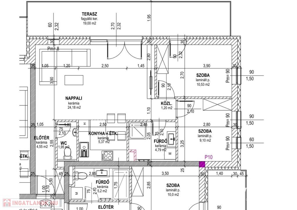 - fűtés központilag, levegő-víz hőszivattyú teleppel, hőleadás mennyezetfűtéssel, klimatizálás mennyezet hűtéssel biztosított
