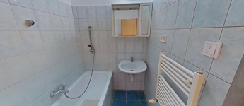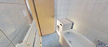A fürdő és az illemhelyiség külön térben helyezkedik el.