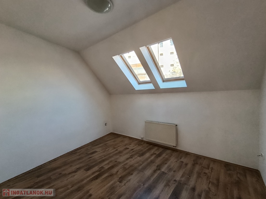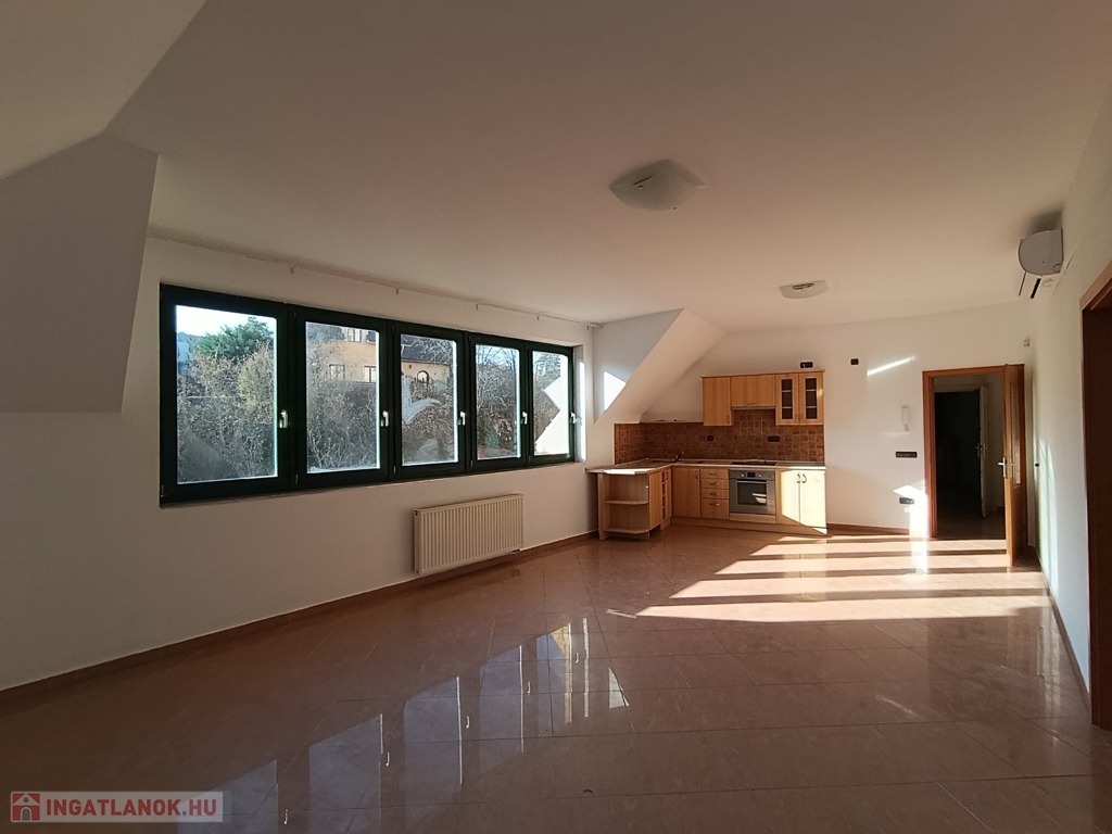 A tetőtér a 2000-es évek elején teljes körű felújításon esett át – beleértve a teljes tetőcserét is. A 105 m²-es lakás elrendezése praktikus és otthonos: három különálló szoba, egy amerikai konyhás- étkezős nappali, tágas fürdőszoba káddal és WC-vel, valamint külön vendég WC. A burkolatok járólap illetve a szobákban szalagparketta.
