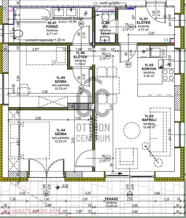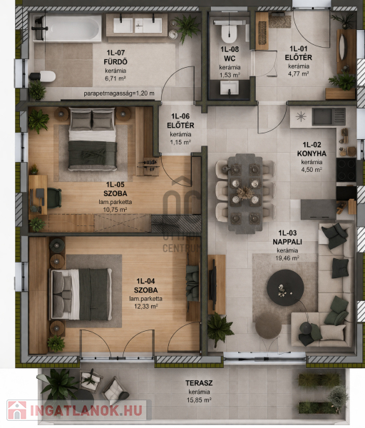 -Átgondolt, praktikus elrendezés, a lakás alapterülete 61,20nm