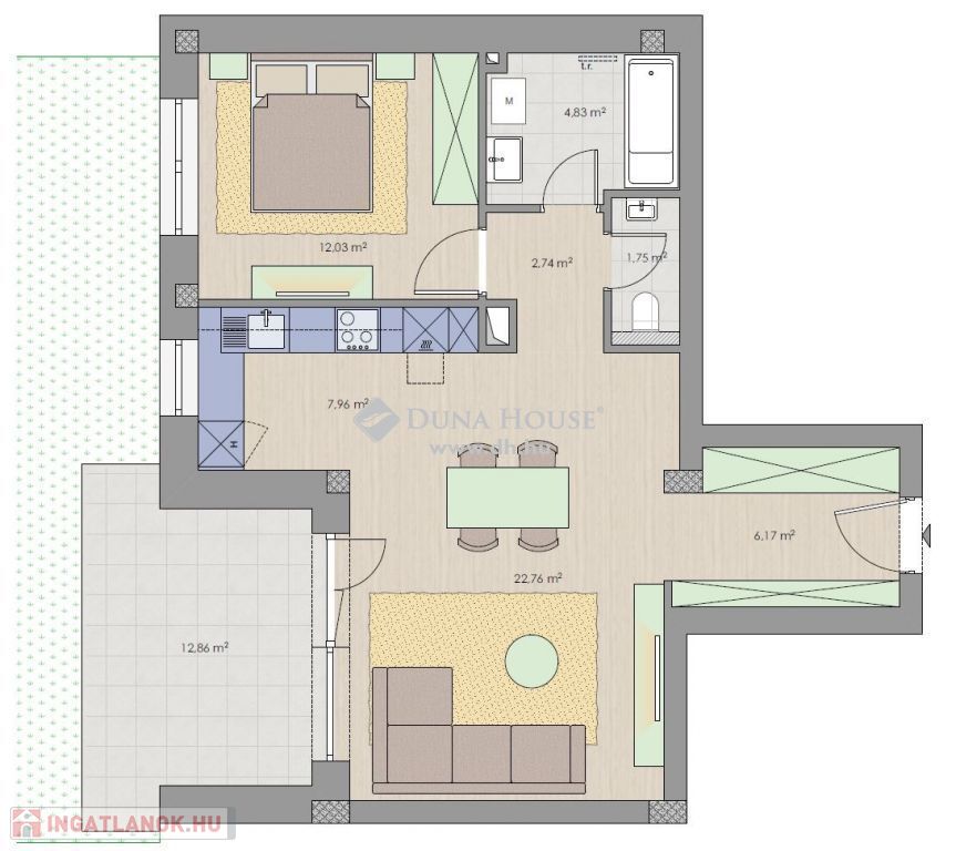 Ez a lakás az EARLY BIRD akcióban most 5.000.000.-Ft kedvezménnyel, 61.900.000.-Ft helyett, 56.900.000.-Ft-ért köthető le.