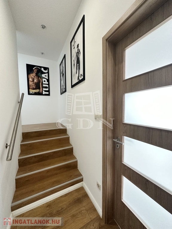 Az ablakok többrétegű műanyag nyílászárók, elektromos redőnnyel ellátottak. A hideg-meleg burkolatok új állapotnak örvendnek, a belső ajtók minőségi, tejüveggel ellátottak. A világításról beépített Spot lámpák gondoskodnak.