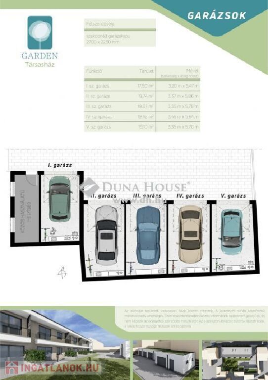 Opcionálisan rendelkezésre áll garázs vásárlási lehetőség.