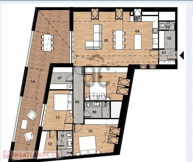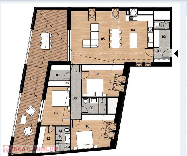 - 115,92 négyzetméter, alacsony energiaigényű, 34 négyzetméteres terasszal