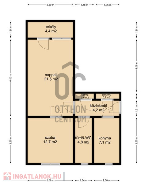- 55 m2-es, 2 egész szobás.