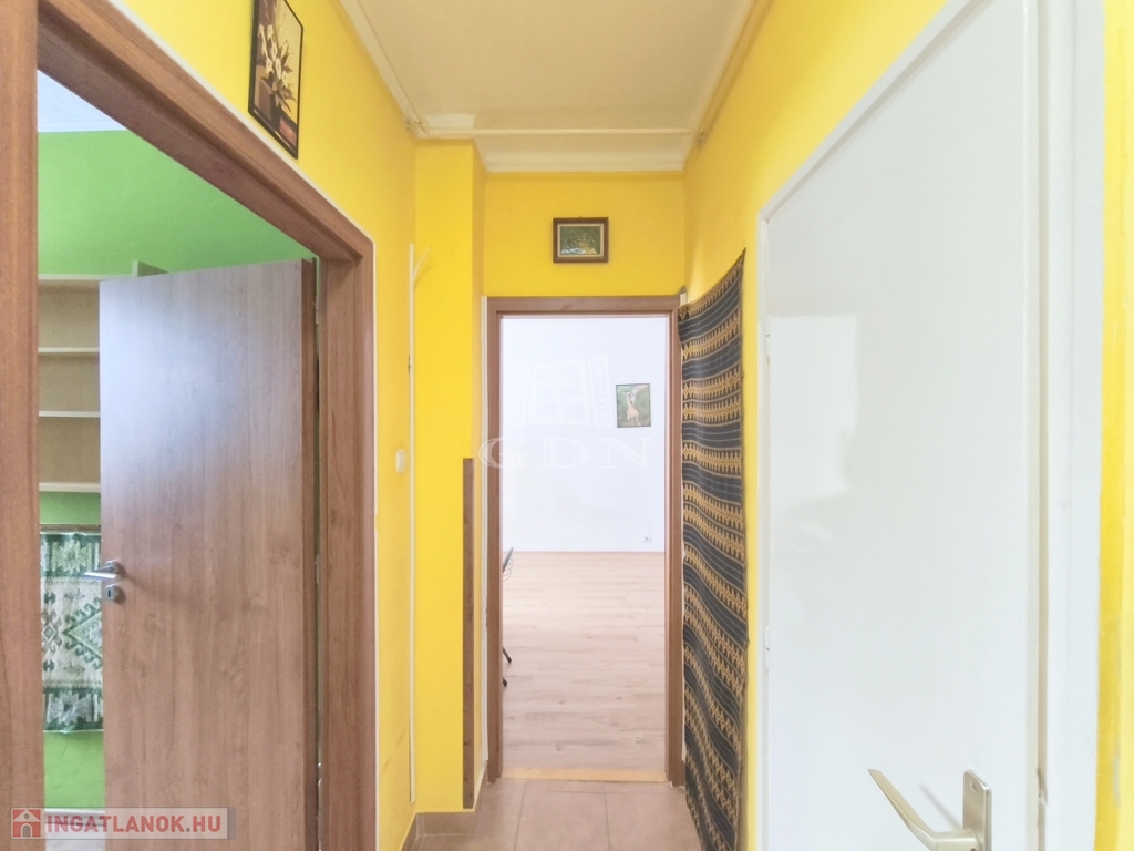 Az ingatlanba belépve a közlekedőbe érkezünk, ahonnan megközelíthető a lakás minden helyisége.
