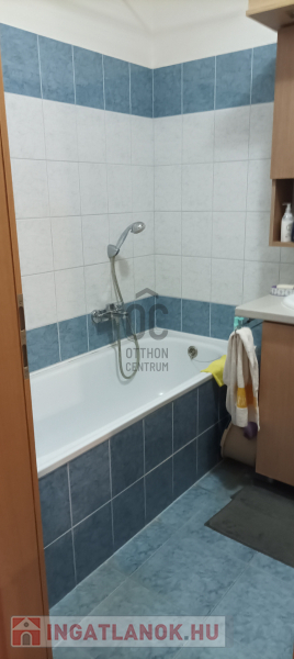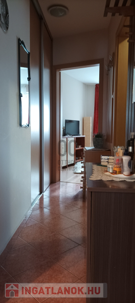 A folyosón egy beépített gardrób szekrény található,szemben a fürdőszoba káddal ellátott kényelmet nyújt.