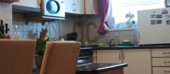 A szobák burkolata parketta,a közös helyiségeké járólap. A konyha gépesített,a fotókon látható háztartási eszközökkel.