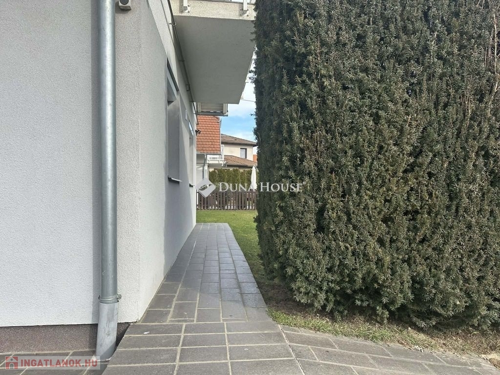 Az ingatlan alsó szintje közvetlen kertkapcsolattal rendelkezik, az udvarról is megközelíthető. Itt található egy modern konyha étkezővel, fürdőszoba+ WC, valamint egy tágas világos nappali.