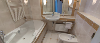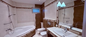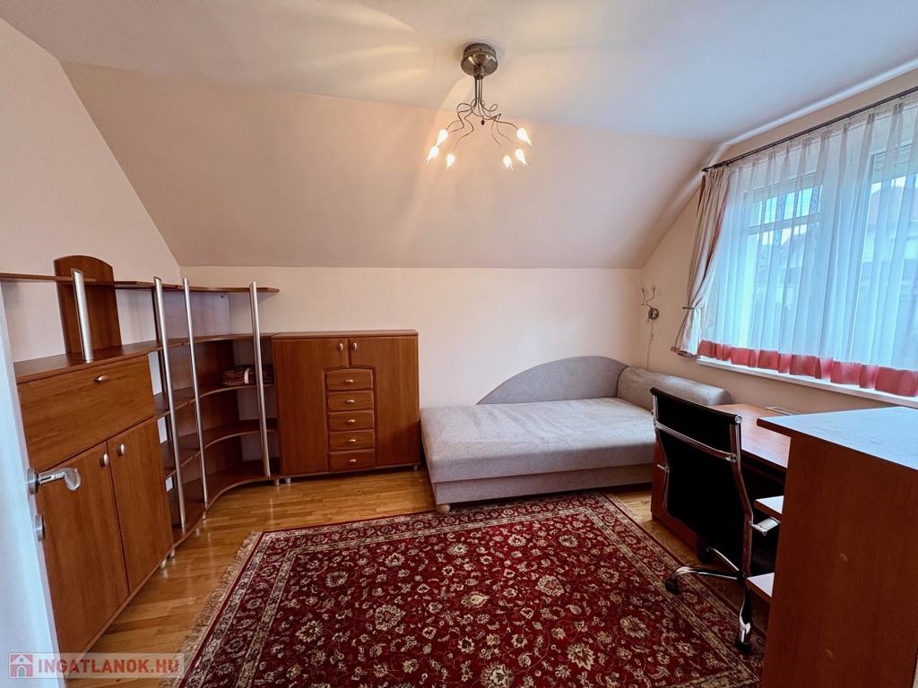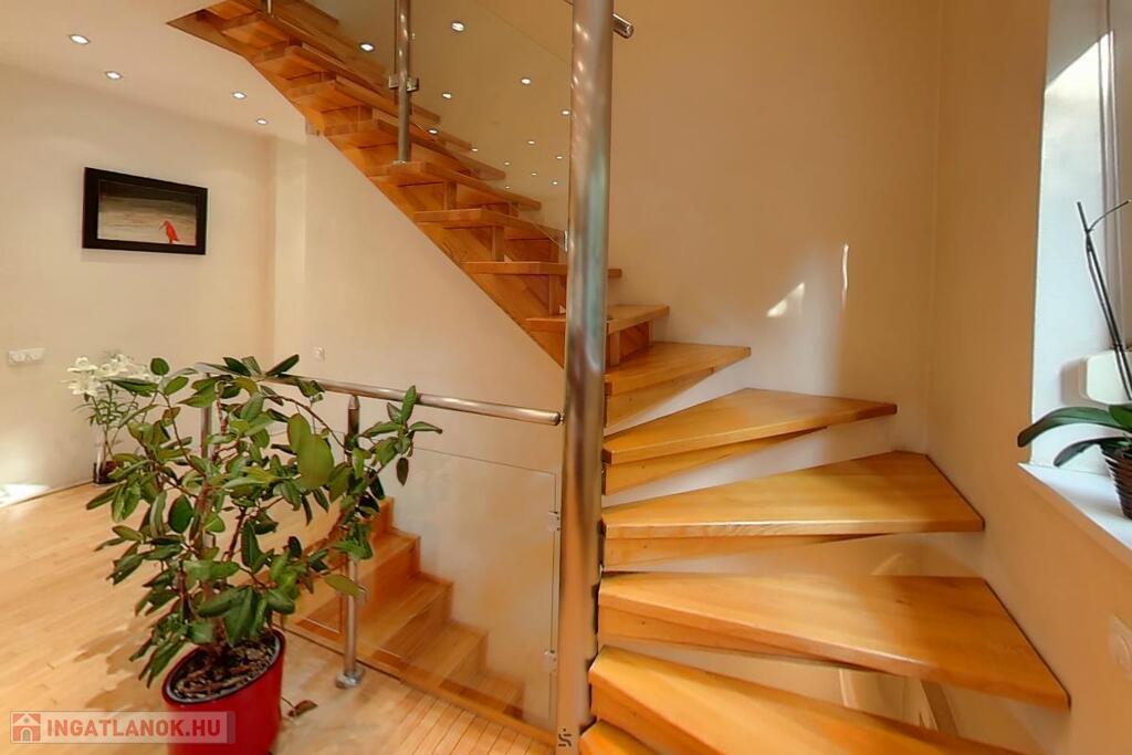 Emeleti szint: az emeletre kényelmes, elegáns, üvegkorlátos, tömörfa lépcső vezet, ahol három - nagyméretű, jól bútorozható, külön bejáratú - hálószoba, ablakos, kádas fürdőszoba és erkély található.