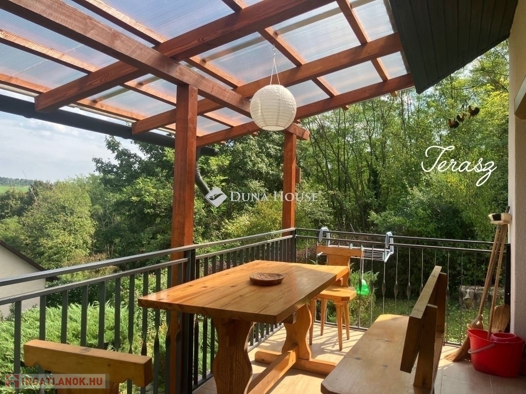 Abaligeten, festői környezetben eladó egy 43 m²-es ház + 7 m² fedett terasszal, ahonnan gyönyörű panoráma nyílik a környékre.
