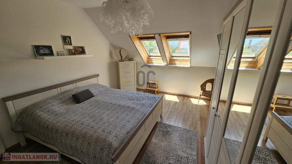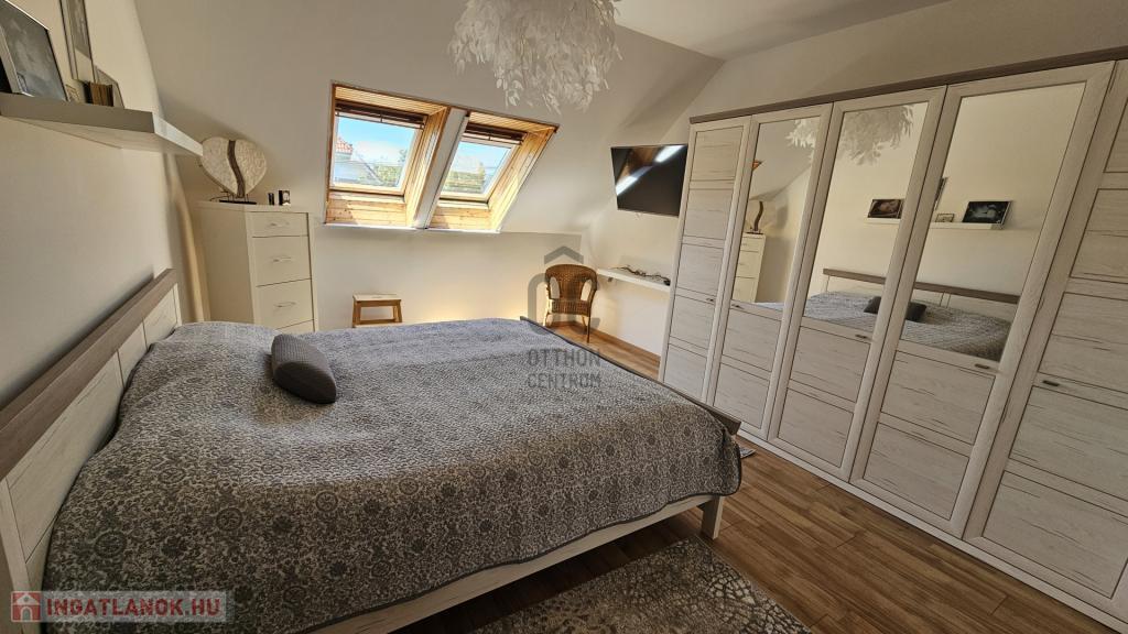 Műanyag nyílászárók, a tetőtérben újszerű Velux tetőablakok biztosítják a természetes fényt.