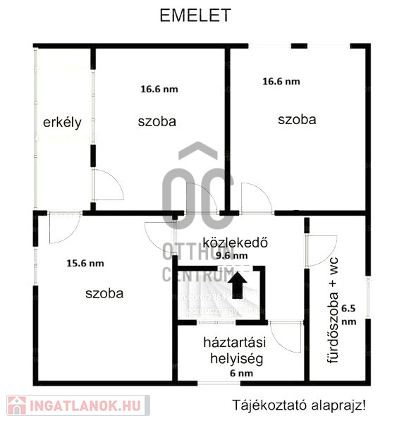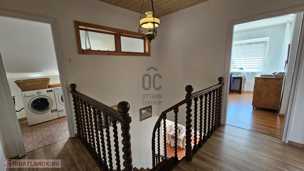 Emelet: 3 hálószoba, fürdőszoba WC-vel, mosókonyha, erkély, amely két hálószobából is megközelíthető.