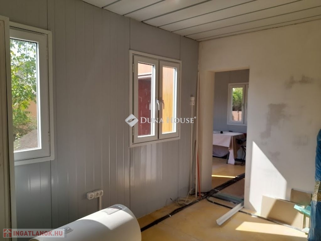 A 28 nm. hasznos alapterületű könnyűszerkezetes házikó egy 801 nm-es telken helyezkedik el a horgásztavak szomszédságában. A házikó minimális ráfordítással lakható hiszen már a nagyobb volumenű munkálatokat elvégezték. Bevezetésre került a víz, villany (három fázis), kialakították a mai szabványnak megfelelő szennyvízelvezetést.