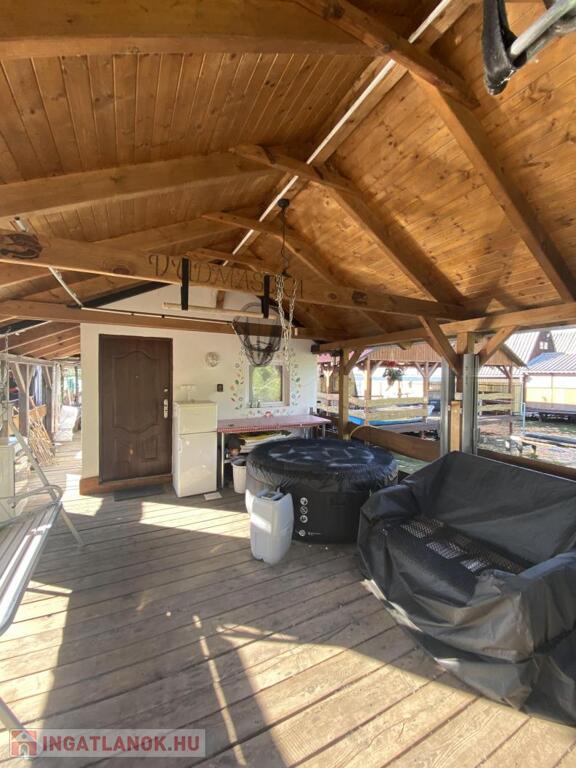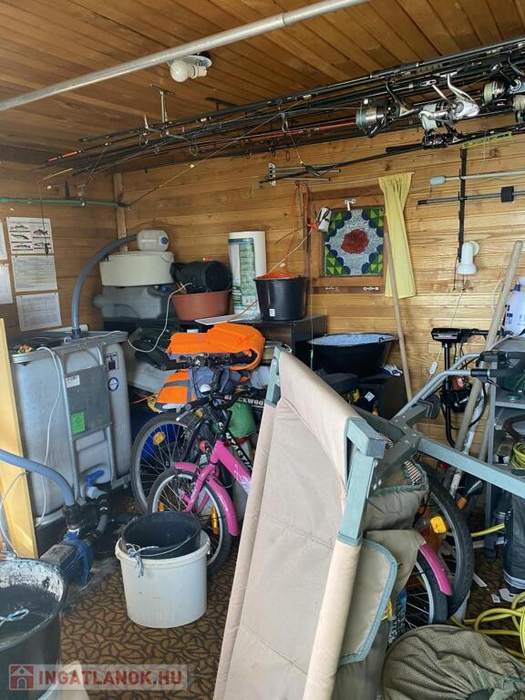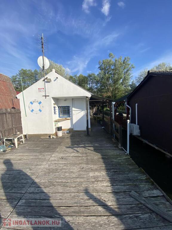 A Dot-Ing Ingatlaniroda által eleget tehet ennek a vágyának,ha megvásárolja ezt az ingatlant, pontos megnevezésén horgászállást. A stég alapterülete 125 m2, ezen található egy kb 90m2 -es, tetővel fedett épület, 25m2-es terasz, tornác, és egy 4 helységből álló ház helyezkedik el. Külön bejáratú horgászhelységből, egy hálószobából, egy fürdőszobából (zuhanyzó, wc),és egy konyha-étkezőből áll. Az épület szigetelt, a kellemes benti hőmérsékletről egy hűtő-fűtő klíma gondoskodik. A fürdéshez, mosogatáshoz (6 személyes mosogatógép a konyhában) a jakkuzihoz, a halpucoló asztalhoz,-amik a teraszon találhatóak-a víz ellátás egy 45 méter mély kristálytiszta kifogyhatatlan saját kútról biztosított.