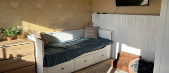 Az ingatlan csendes, fás környéken, a hegy lábánál helyezkedik el, a főúttól pár száz méterre van. Buszmegálló 5 perc alatt elérhető.