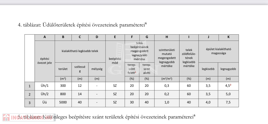 Az ingatlan besorolása ÜH/1,üdülő övezet 20% beépíthetőséggel.