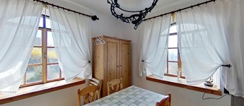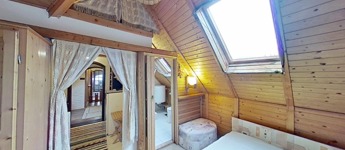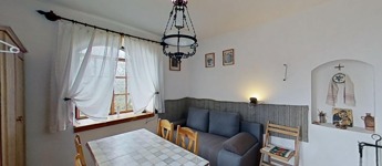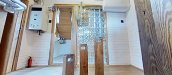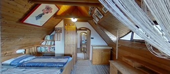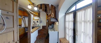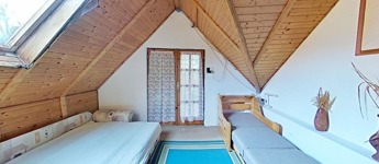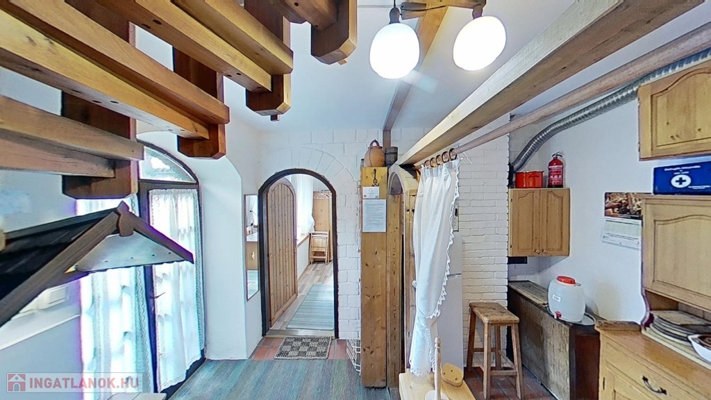 A két szintet egy belső csigalépcső köti össze, további egy apartman a ház oldalában az udvarról megközelíthető. Mellékelt virtuális túra bemutatónk ezt az apartman-részt nem tartalmazza.