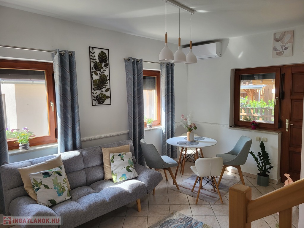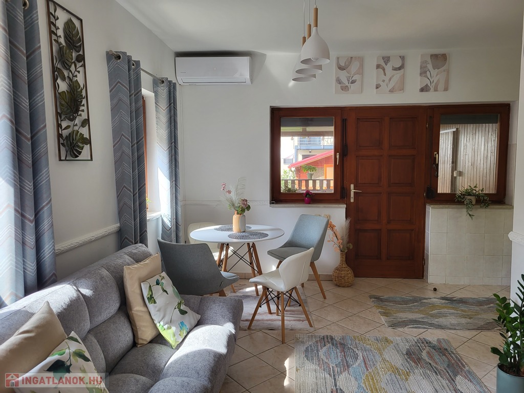 A házat egész évben lehet használni, új 2024.-ben szerelt távolról is kapcsolható, wifis hűtő-fűtő klímákkal szerelt mind a két szintje.