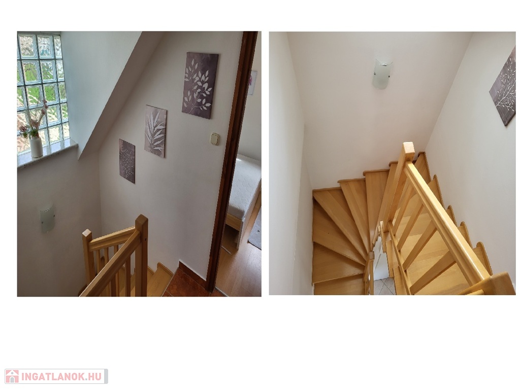 Felső szinten: 2 szoba, fürdő-WC, emeleti terasz