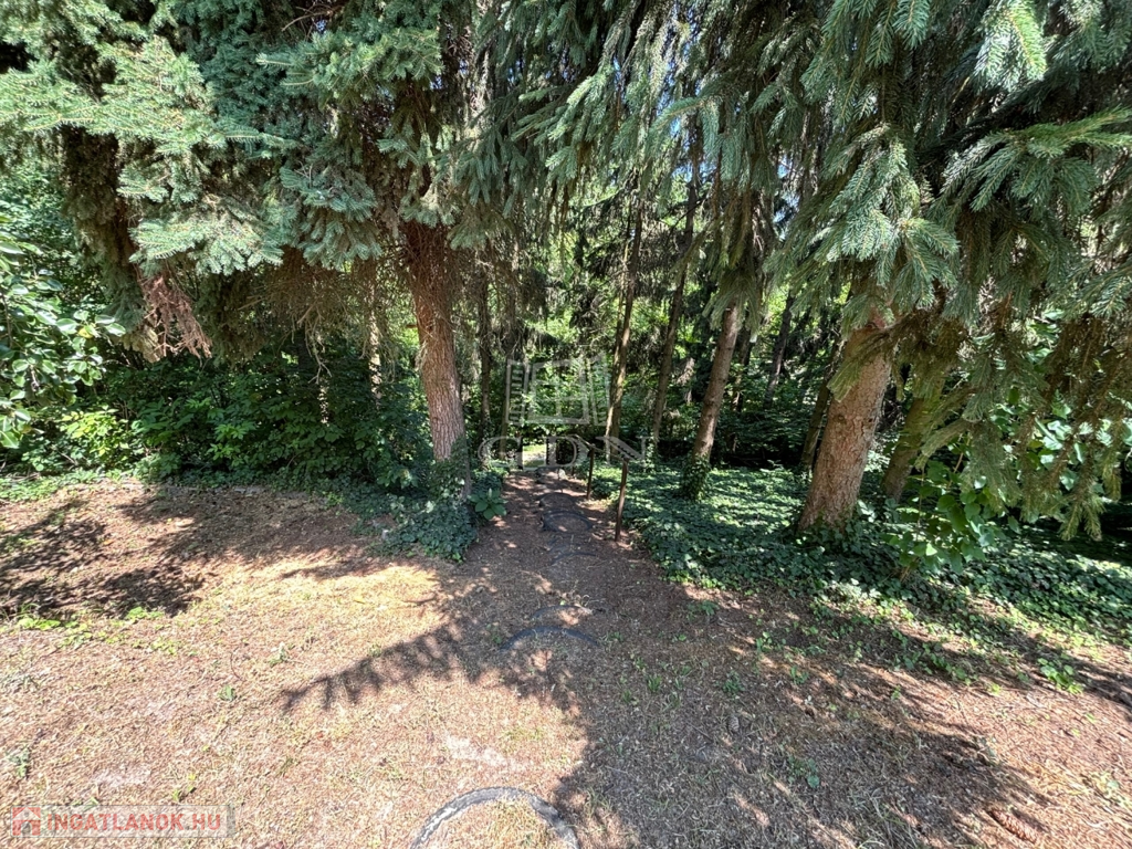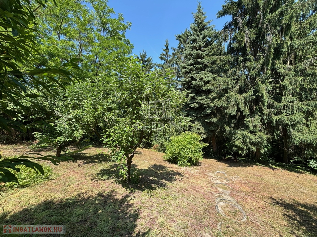 A csendes környezetben található ingatlan hatalmas fenyőfákkal és termő gyümölcsfákkal beültetett, területe 1,036 m2.