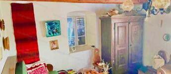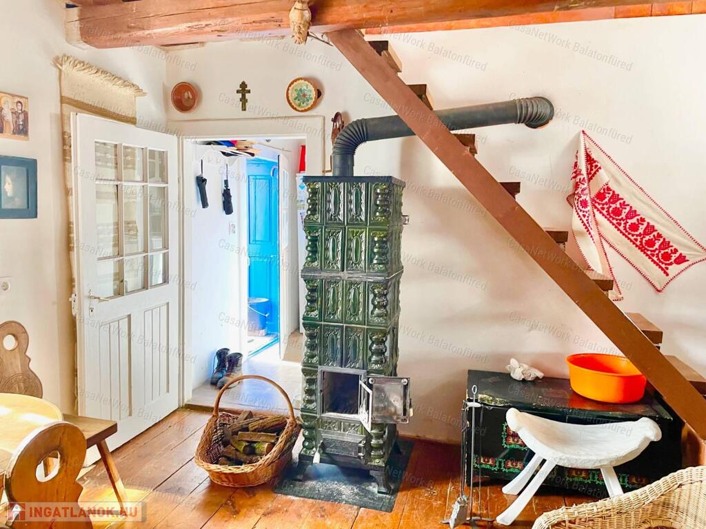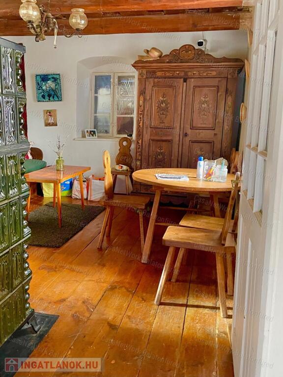 -100 cm vastag kőfalak- eredeti fa nyílászárók, kiváló minőségben megtartott fagerendás mennyezet.