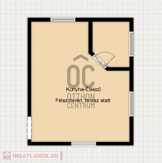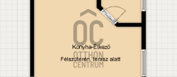 Félszuterén szint: A terasz alatt kialakított tágas konyha-étkező és egy praktikus kamra található.