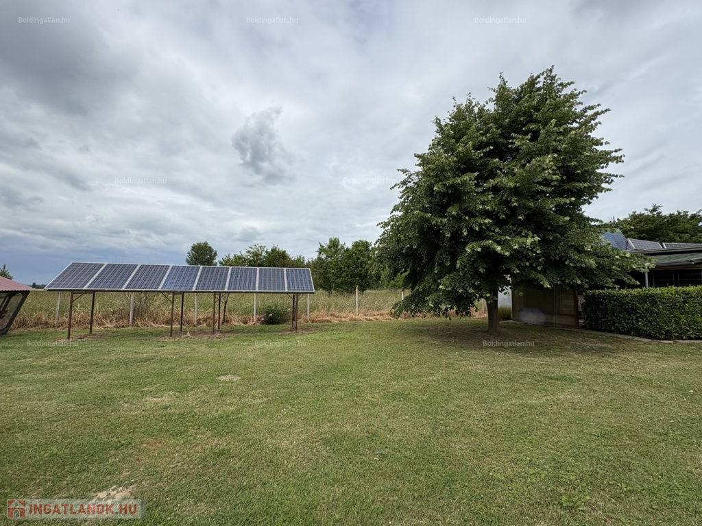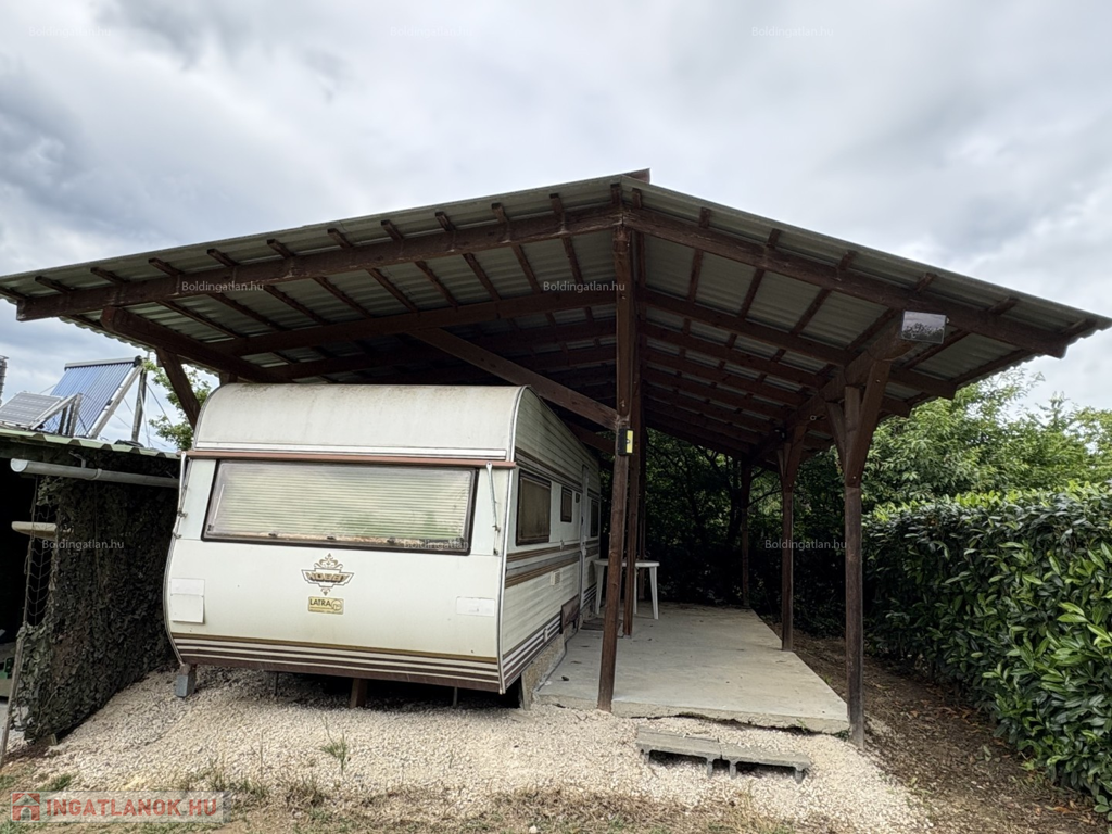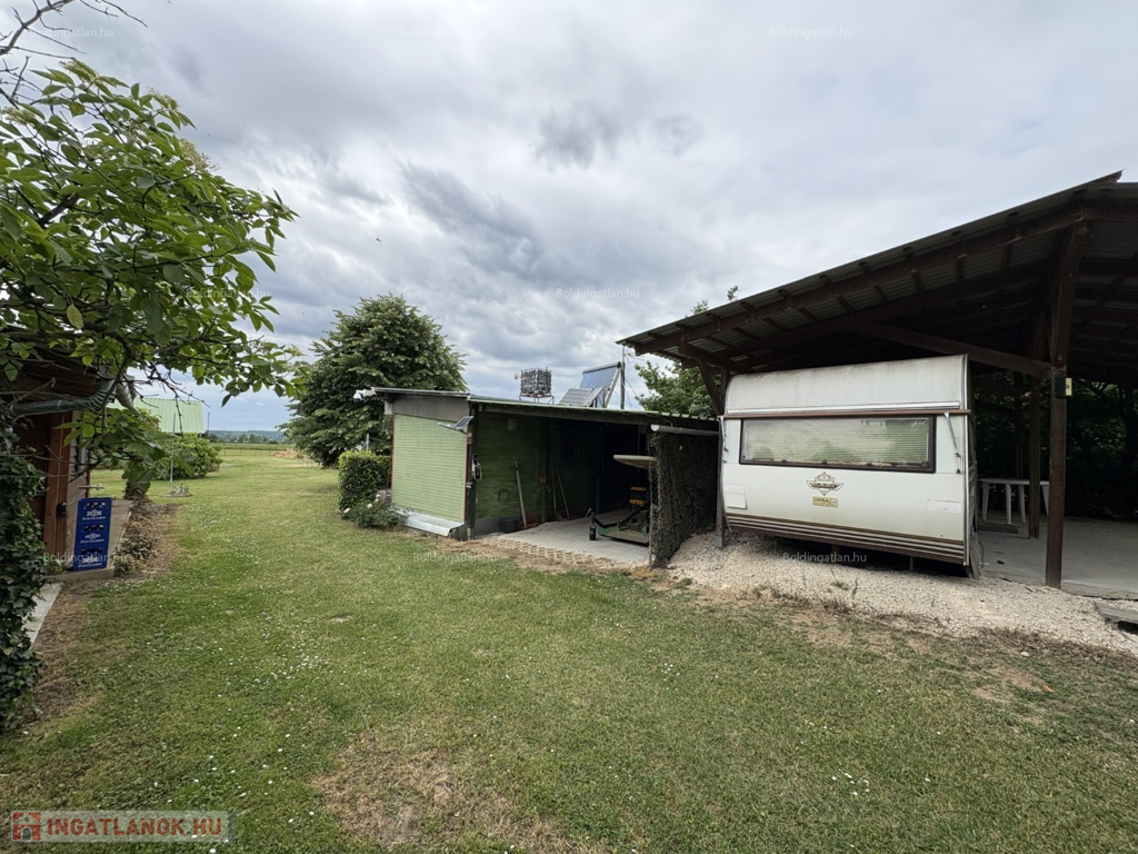 Somogyszentpálon csendes környezetben hétvégi ház, 300 m hosszú és 50 m széles sárkányrepülésre, és UL repülőgépek fel és leszállására alkalmas - jelenleg működési engedéllyel nem rendelkező - reptérnek használt területtel, gyümölcsöskerttel eladó. Két épület található a területen, összesen három szobával, amely hat fő elszállásolására nyújt lehetőséget, valamint egy 8 m hosszú lakókocsi további négy személy számára nyújt szállás lehetőséget. A telken található egy fedett kocsibeálló, és a kerti gépek számára tároló. Az épületek áramellátása sziget üzemű napelemmel megoldott, a meleg vizet vákumcsöves szolár kollektív rendszer biztosítja, a fűtést parapetes gázkonvektorok szolgáltatják, illetve a vizet hidrofor juttatja a kútból az épületbe. Tartozik hozzá egy 80 m2-es hangár és egy 12 m hosszú konténer is, amely akár kisebb raktárként is funkcionálhat, valamint a telek végében egy 9 m-es magasles áll. A terület teljesen körbe van kerítve, kamera és riasztórendszerrel van ellátva. Telek: 18.345 m2. Amennyiben az ingatlan felkeltette az érdeklődését, kérem hivatkozzon a 709. számú ajánlatra! Irodánk címe: Kaposvár Irányi D. u. 9.