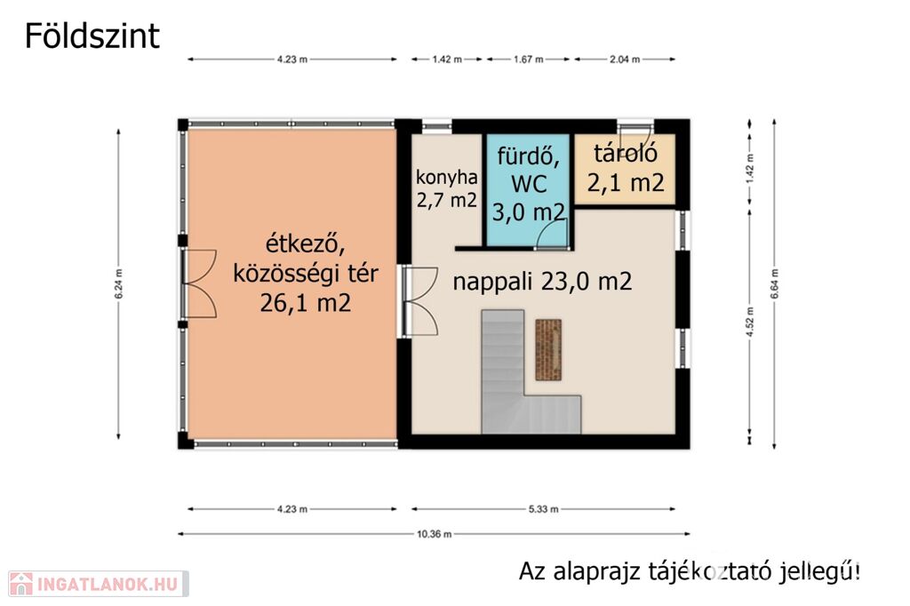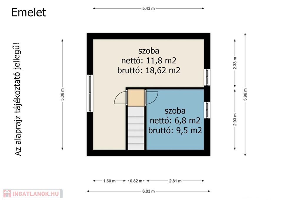 - tetőtér bruttó 28,2 m2 nettó: 18,6 m2