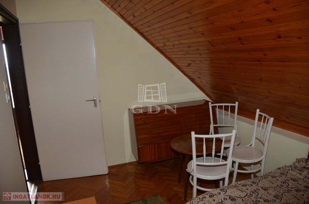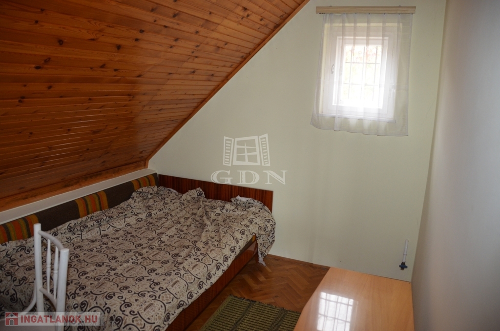 Emelet: 1 nagy és 2 kisebb szoba lambériázott mennyezettel, az egyik szobából fürdő kialakítható.