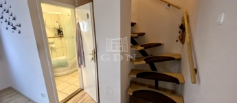 A 309 m²-es telken elhelyezkedő épület összesen mintegy 68 m² hasznos alapterülettel rendelkezik. Az alagsori szint 30 m²-es, ahol a konyha, egy szoba és egy kis helység került kialakításra. Itt található egy meghitt hangulatú cserépkályha és emelett elektromos fűtőtestek biztosítják a komfortot. A földszinten egy 24 m²-es lakótér található egy nappalival és egy fürdőszobával, amelyhez egy 10 m²-es terasz kapcsolódik; ezen a szinten gázkonvektor és elektromos fűtés gondoskodik a kellemes hőmérsékletről. A tetőtérben egy 10 m²-es szoba kapott helyet, valamint egy 4 m²-es terasz, ahonnan lenyűgöző panorámás kilátás nyílik a Duna holtágára és a környező természeti környezetre.
