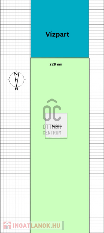 A telek egészen kinyúlik a víz parthoz. Jelenleg könnyűszerkezetes házakat lehet rá építeni, amik egyszintesek, plusz a tetőteret be lehet építeni és a szomszédtól fél-fél métert kell kihagyni.