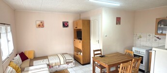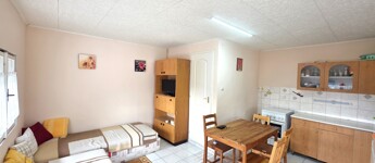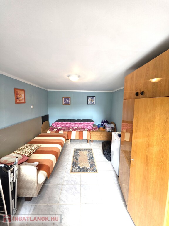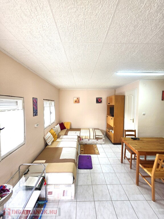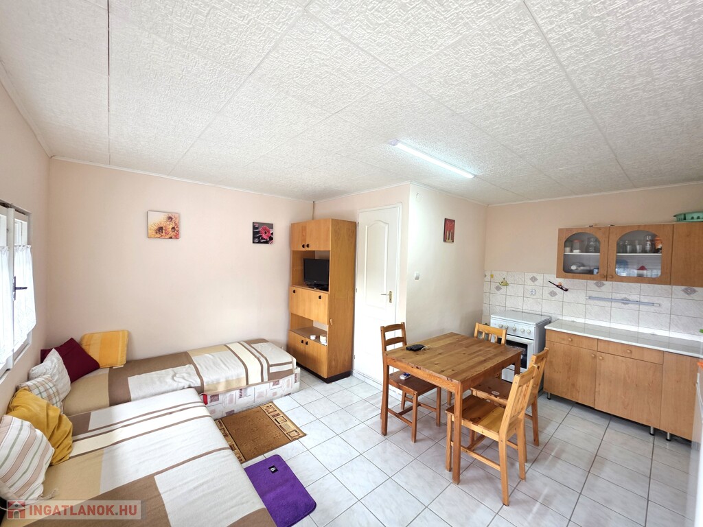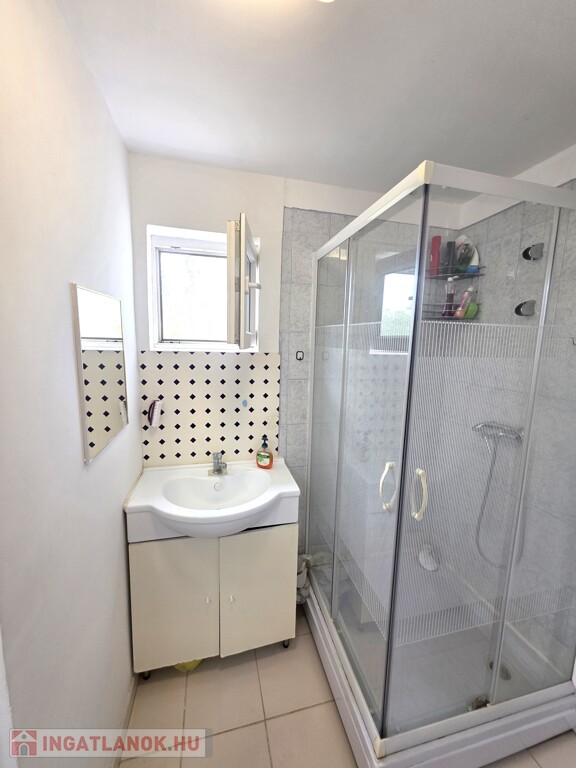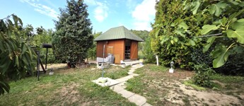 A telek igazi különlegessége a 42 m²-es házikó. A belső tér világos, barátságos és pozitív energiával tölt fel. A modern fürdőszobában zuhanyzó várja, a pince száraz és praktikus tárolóhelyet biztosít, az új bojler pedig gondoskodik a meleg vízről.