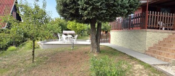 A telken, bográcsozó hely, fa kerti hintaágy, kerti víztároló, a nap által melegedve zuhanyozható, kerti csap is található, hogy a pihenés valóban teljes legyen.