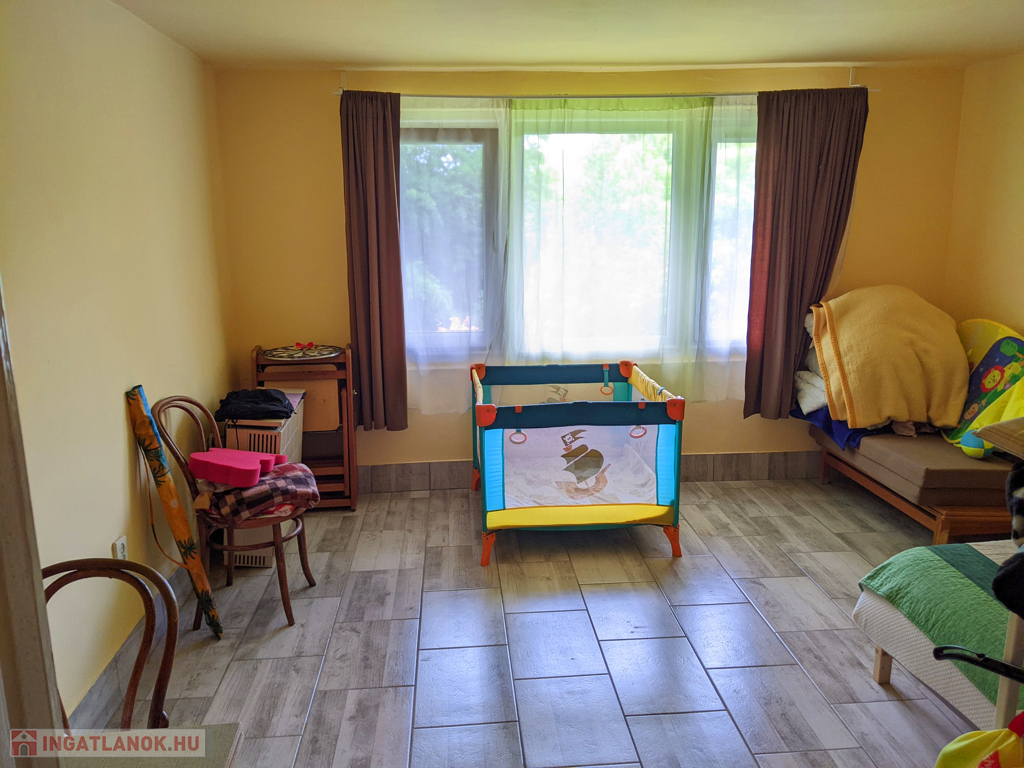 A nyaraló 55 m²-es, az 1970-es évekből származik, de 2000-ben teljes műszaki, 2020-ban pedig esztétikai felújításon esett át, így egyesíti a régi balatoni hangulatot a modern kényelemmel.