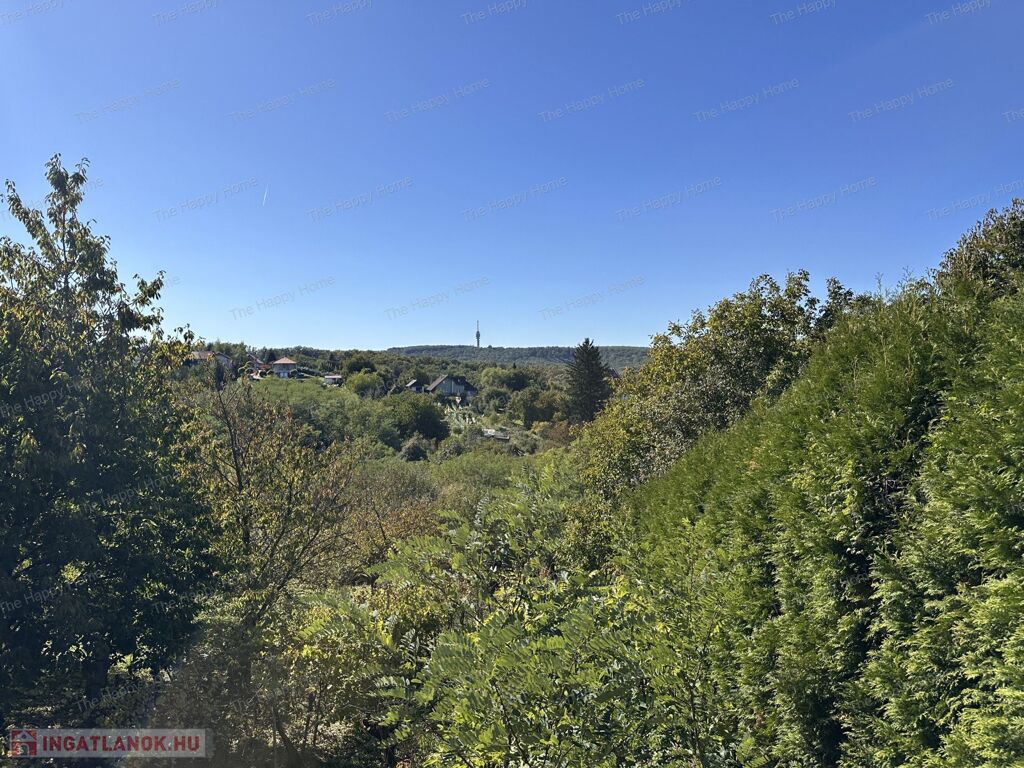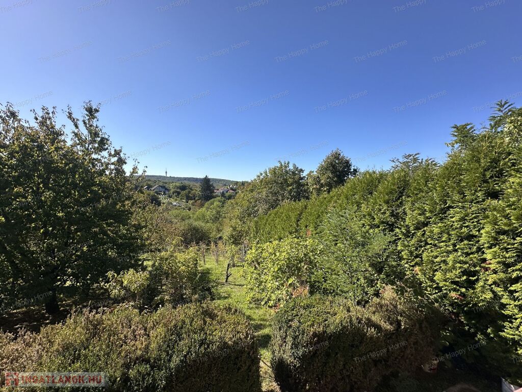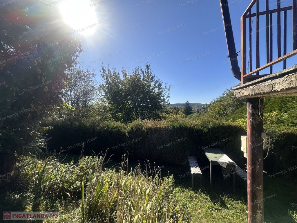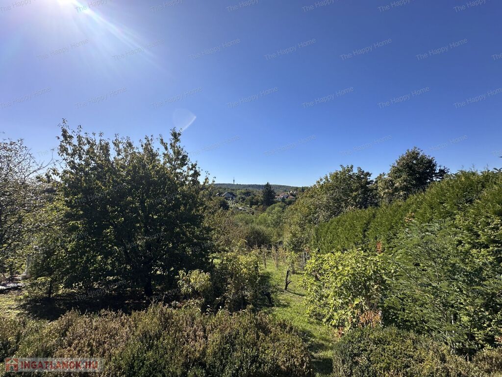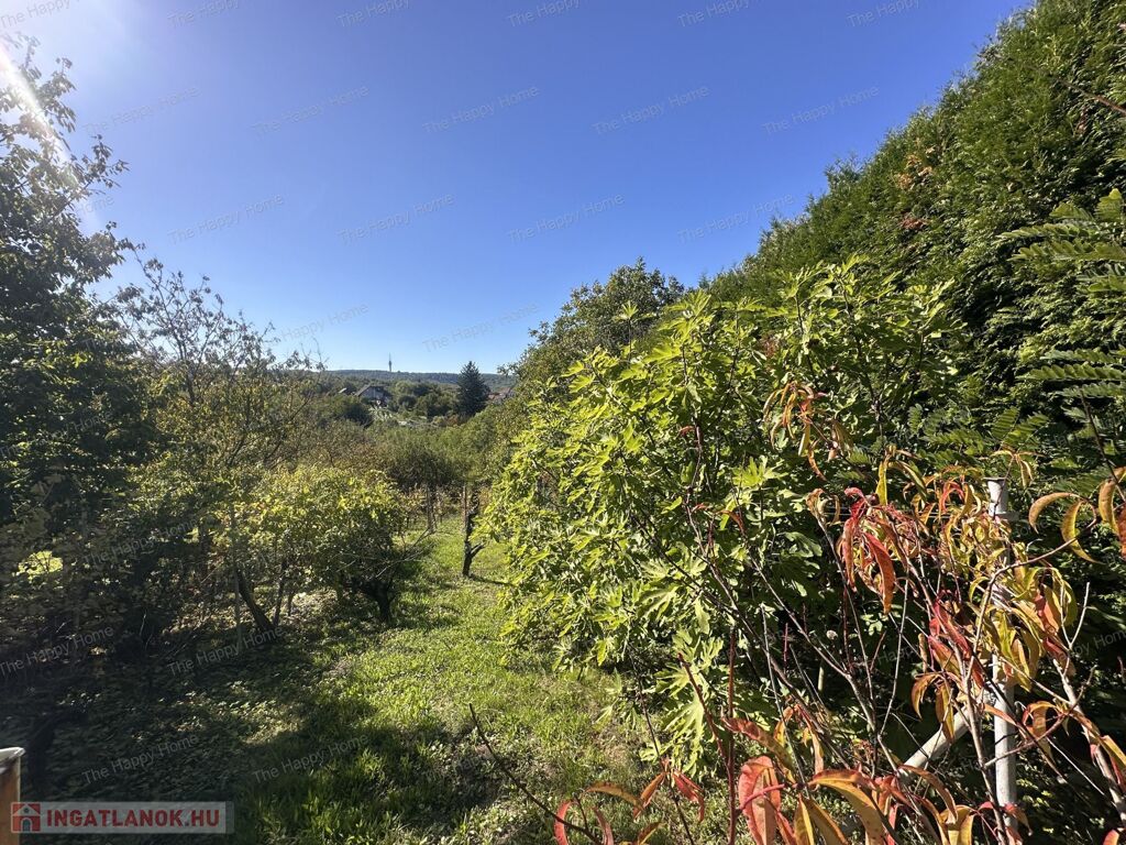 - Tágas, részben sík telek gyümölcsfákkal és kilátással