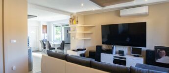 A fűtést és a melegvizet gázkazán szolgáltatja, a hőleadást padlófűtés és radiátorok kombinációja biztosítja.