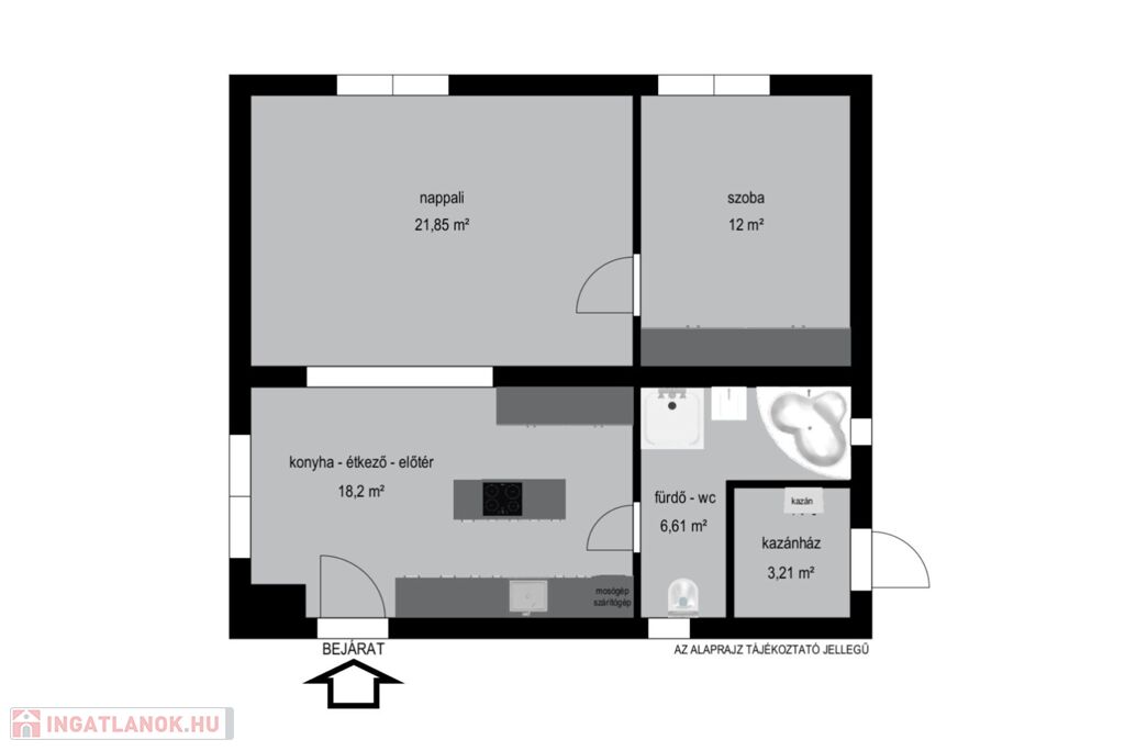 Az ingatlan klimatizált, nappali-konyha-étkező, 1 szoba, fürdőszoba-wc, kialakítású.