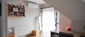 A komfortérzetről korszerű műszaki tartalom gondoskodik: a földszinten padlófűtés, az emeleten radiátoros hőleadás működik, amelyet hűtő-fűtő klíma egészít ki az év minden szakában. A nappali kandallója különösen hangulatos alternatív fűtési és élményforrás. A nyílászárók 2 rétegű műanyag ablakok, redőnnyel és szúnyoghálóval felszerelve, a beltéri ajtók pedig prémium minőségű fa kivitelben készültek.