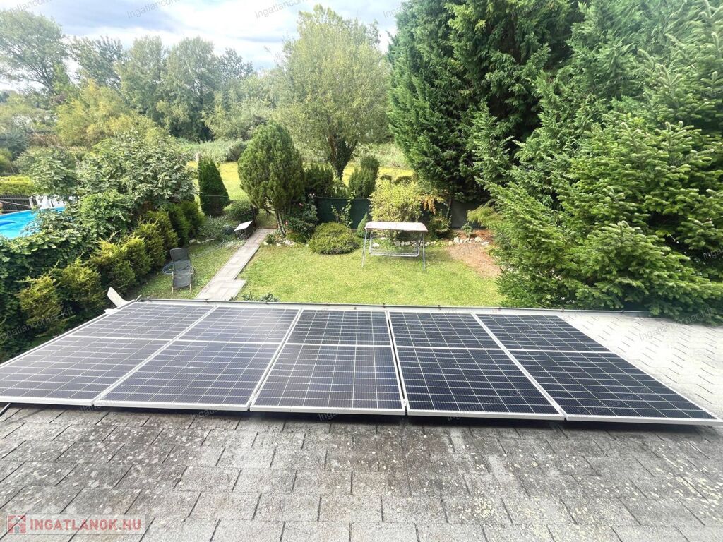 Energiaellátás: 9 kW napelem SZALDO elszámolással (közel 0 Ft havi energiaszámla) és 7 kW LG levegő–víz hőszivattyú wifi opcióval – ENERGIATAKARÉKOS megoldások. Hűtés–fűtés: 2 db inverteres Gree klíma, 1 db Orion klíma, hőszivattyú + elektromos fűtőpatron.