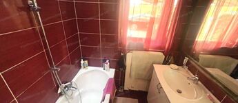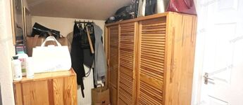 beépített Whirlpool kerámia főzőlap és sütő, szagelszívó, 10 l Hajdú villanybojler a mosogató alatt. Mosó- és mosogatógép kiállás, 100 l Hajdú Aquastic villanybojler. Gardrób és tároló beépített szekrénnyel.