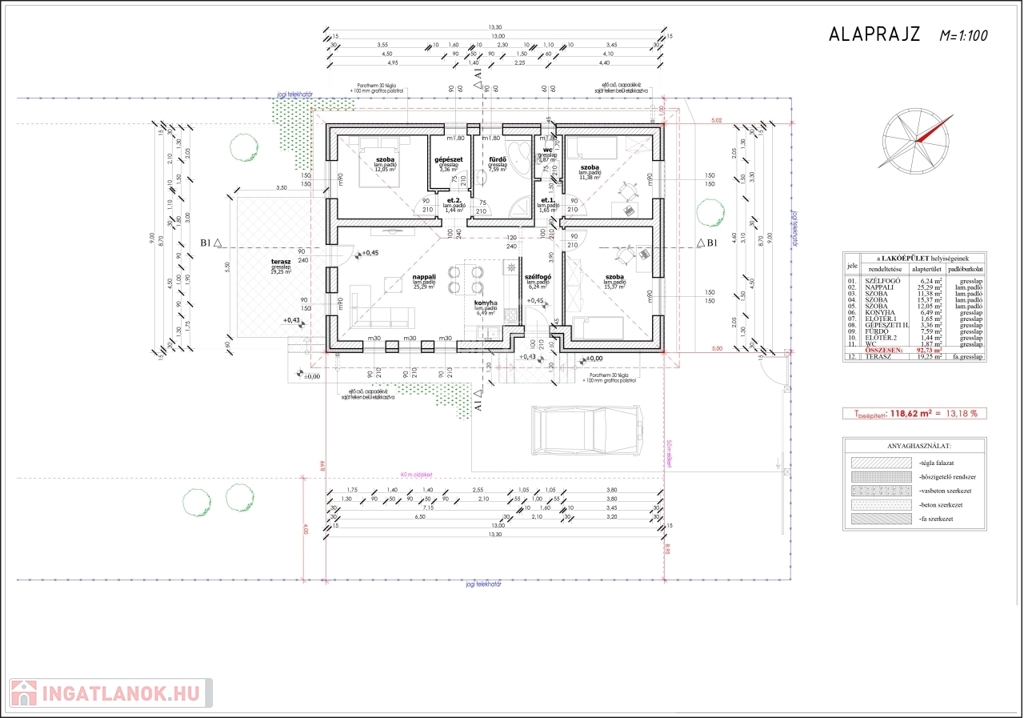 Hideg/melegburkolat: 3000 Ft/m²-ig