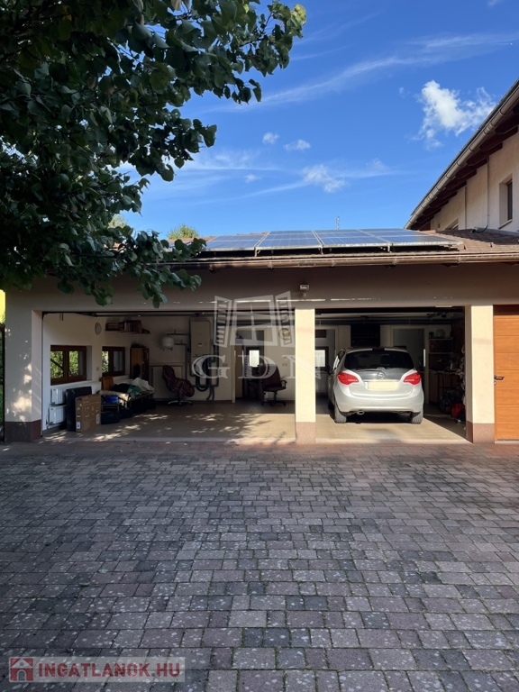 - A telekre egy elektromos kapun keresztül érkezünk meg, a garázson kívül egy mobilgarázs is helyet kapott az udvaron