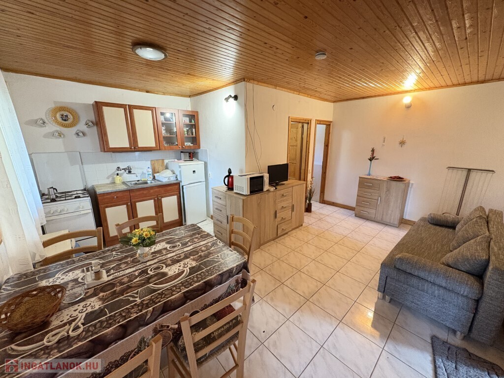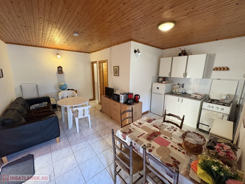 Balatonfenyvesen - a vízparttól nem messze, a strandtól 800 m-re - nyaraltatásra, vagy akár céges nyaralónak is kitűnően alkalmas 3 különálló apartmanból álló összesen 125 m2-es családi ház eladó. A főépületben 2 db egyenként 41 m2-es apartman található, mindegyikben előszoba-nappali-étkező-konyha, 2 szoba, fürdőszoba, wc helyiségek találhatóak, illetve tartozik hozzájuk 1-1 14 m2-es fedett terasz is. Az udvarban különálló épületben került kialakításra a 3. - 30 m2-es - tetőtér beépítéses apartman, amelynek az alsó szintjén előszoba, kis nappali-étkező-konyha, fürdőszoba-wc, tároló, a tetőterében pedig 2 szoba került kialakításra, illetve ennek az épületnek is van egy kis fedett terasza. Az apartmanok fűtése gázkonvektorokkal megoldott, a melegvíz ellátása villanybojlerekkel biztosított, valamint a hátsó épületben az alsó szinten és a tetőtéri egyik szobában légkondicionálót is szereltetett fel a tulajdonosa. A parkolási lehetőség személygépkocsikkal az udvarban természetesen lehetséges. Az ingatlan a lokációjának köszönhetően befektetésnekis egy jó lehetőség, Aldi, éttermek, autópálya lehajtó néhány percen belül kényelmesen és gyorsan és könnyen elérhetőek. Telek: 615 m2