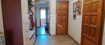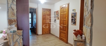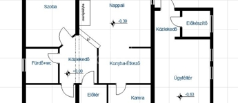 - A lépcsős és fedett bejáratról az előtérbe jutunk. Innen nyílik a 2 szoba, az amerikai konyhás nappali; a nappaliból nyíló télikert, a fürdőszoba és WC.