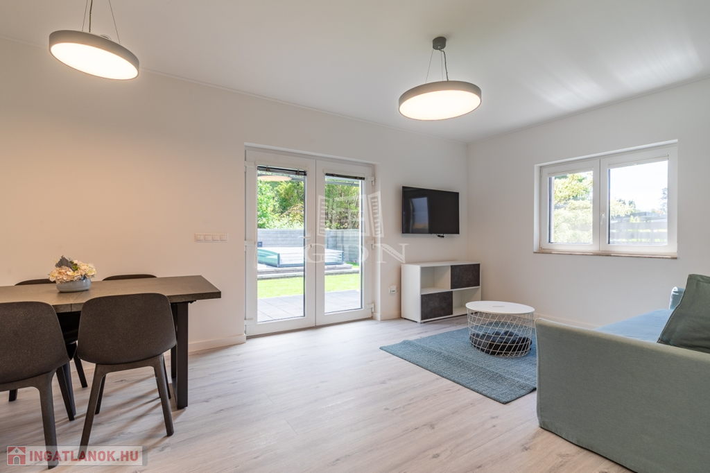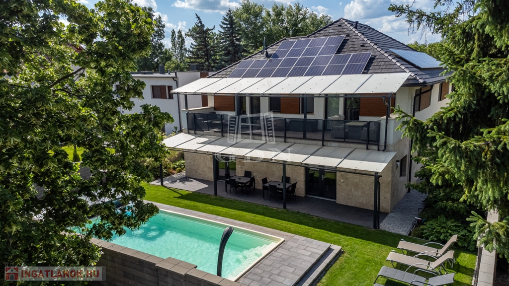 Az ingatlan kertész által gondozott kerttel, programozható öntözőrendszerrel, kamera-, beléptető- és riasztórendszerrel, valamint elektromos autó töltővel felszerelt.