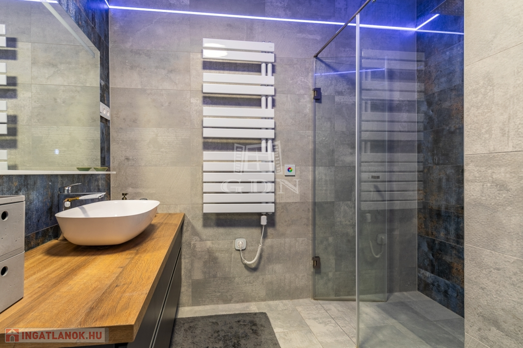 Az ingatlan újszerű állapotú, az apartmanok kiváló elosztásúak, élhető terekkel rendelkeznek, melyek prémium anyagok felhasználásával készültek. Az igényesen kialakított, beépített, gépesített konyhák, valamint a komplett bútorzat a vételár részét képezik.
