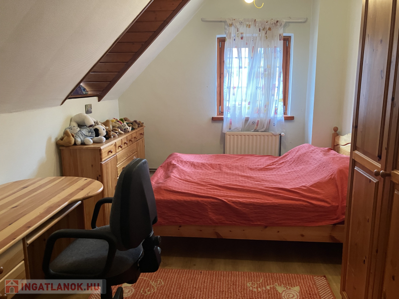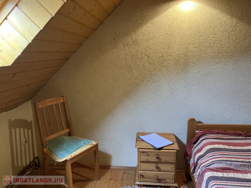 A kétszintes lakóház földszinti alapterülete 85 m2, itt nappali, konyha, kamra és egy WC., a tetőtérben pedig négy hálószoba, fürdőszoba és külön WC. található.